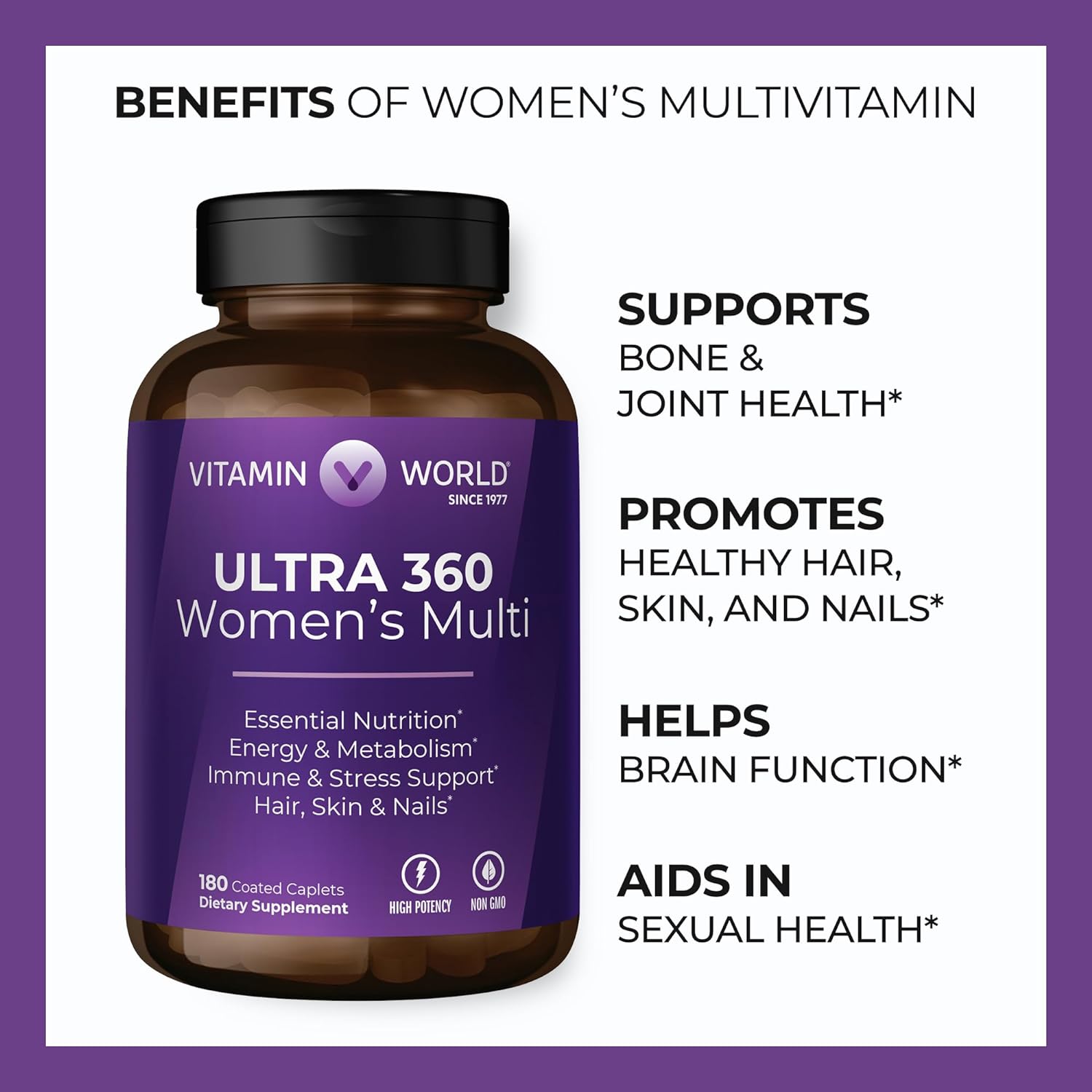 비타민 월드 ULTRA 360 여성 다중비타민은 단순한 보충제 이상입니다 - 여성의 건강과 웰빙의 모든 측면을 지원하기 위한 영양소의 파워하우스입니다. 에너지 수준을 높이기, 심장 건강을 지원하기, 인지 기능을 향상시키기 원한다면, 이 다중비타민을 반드시 선택하세요.